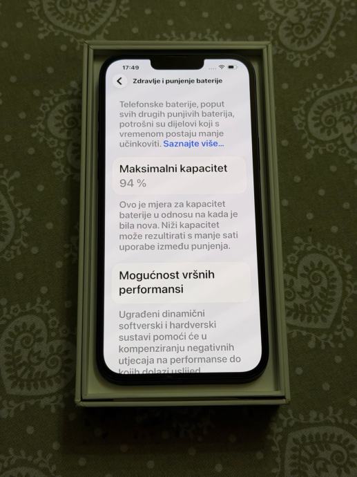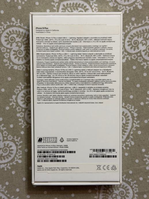 Prodajem iPhone 14 Plus 128GB u crnoj Midnight boji s originalnim pakiranjem. Uređaj je u odličnom stanju, potpuno funkcionalan sa svim značajkama koje nudi ovaj model. Zdravlje baterije 94%