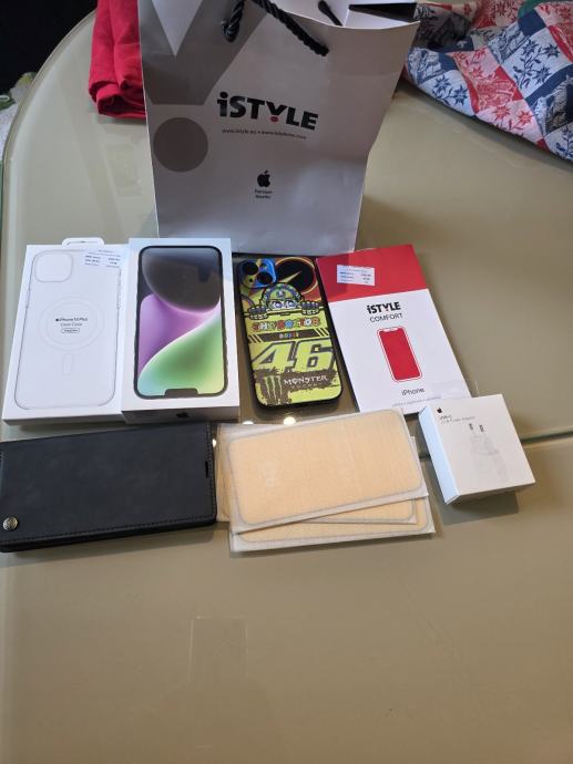 Prodajem Iphone 14plus u super stanju bez ikakvih vidljih znakova koristenja . U mobitel ide Clear Case orginal kupljena u i style također brzi punjac 20w kabel i dodatne maskice . Preklopna kozna maskica nije nikad koristena , dodatna 3 stakla kupljena na Amazon.de .Moguc pregled u servisu po vasoj želji . Na glupa pitanja i ponude ne odgovaram.Nisam za zamjene jer sam kupio drugi mobitel na produženje preplate.Baterija je na 84 posto.