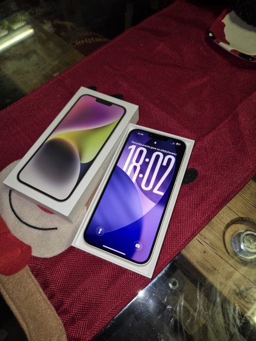 Prodajem rabljeni iPhone 14 Plus u odličnom stanju s originalnim pakiranjem. Uređaj je potpuno funkcionalan, s baterijom koja drži 82% maksimalnog kapaciteta. Dolazi s kutijom i svim originalnim dodacima.