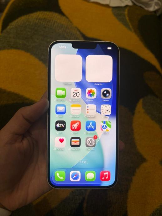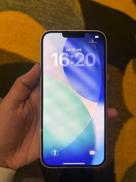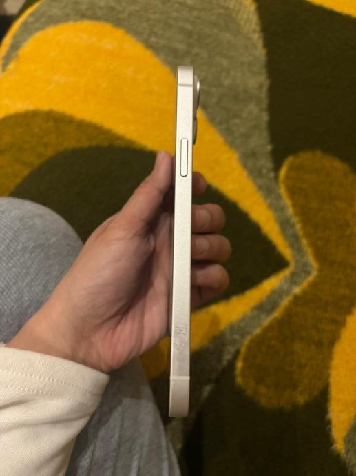 Prodajem rabljeni iPhone 14 Plus u bijeloj boji. Radi se o većem modelu iz Apple-ove linije 14, s dual kamera sustavom na stražnjoj strani i aluminijskim okvirom. Moguća dostava.