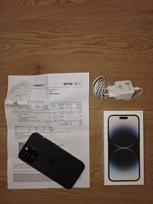 Iphone 14 pro max space black 128gb, mobitel u odličnom stanju. Kupljen u istyleu prije godinu i devet mjeseci sto je rijetkost za taj model. Prilažem i račun kako je i vidljivo na slici. Baterija na 88%. Kupac dobiva i punjač. Cijena je 450 eura i to je fixno. Isključivo osobno preuzimanje Zagreb i okolica. KONTAKT BROJ: 098-9409-544