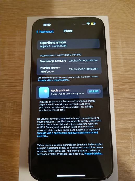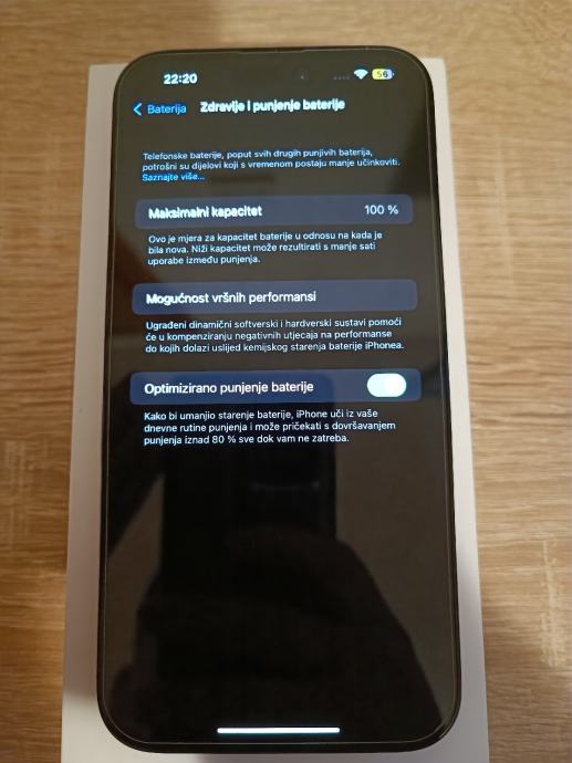 Zdravlje baterije na 100% kapaciteta, uređaj radi na sve mreže.