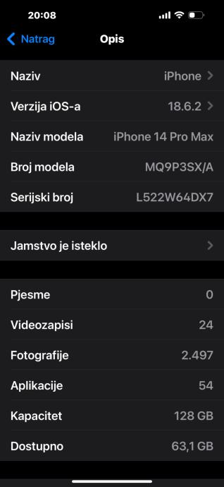 Prvi vlasnik, Iphone 14 PRO MAX 128GB , tri orginal maskice, sve radi kao i prvog dana, sve orginal, kutija, punjac, iglica, sacuvan, baterija 85posto, prodaja jer je kupljen novi, nalazi se na podrucju osijeka