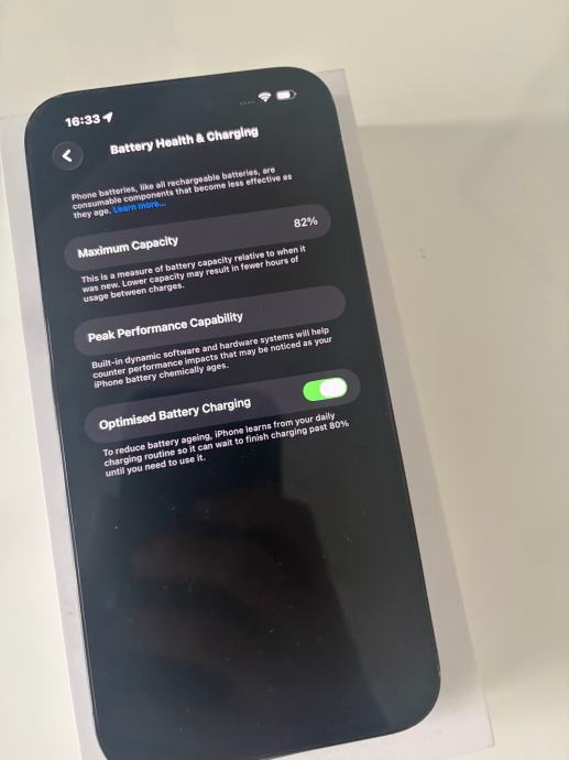 Prodajem iPhone 14 Pro Max s 1TB interne memorije u crnoj boji Zdravlje baterije iznosi 82%, što je vidljivo u postavkama uređaja. Dolazi s originalnom kutijom.
