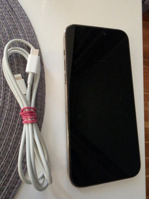 Prodajem iPhone 14 Pro Max s 256 GB memorije u bijeloj boji. Uređaj dolazi s kabelom za punjenje.