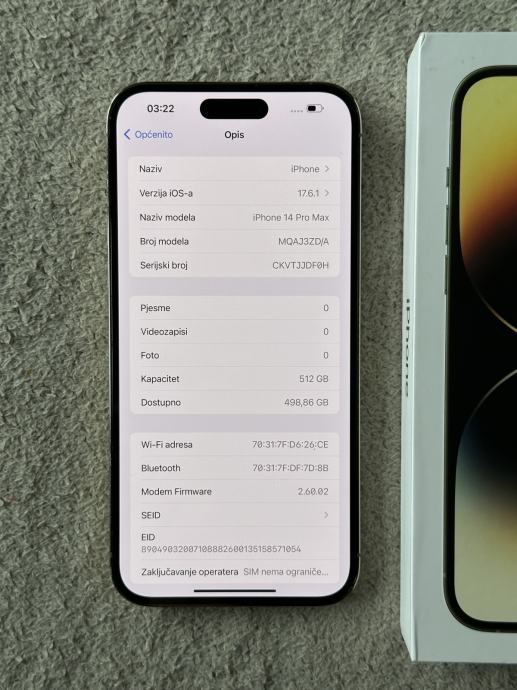 Prodajem Apple iPhone 14 Pro Max, 512GB, zlatne boje, otključan na sve mreže.
