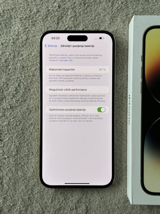 Mobitel je u stanju novoga. Zdravlje baterije je na 87%.