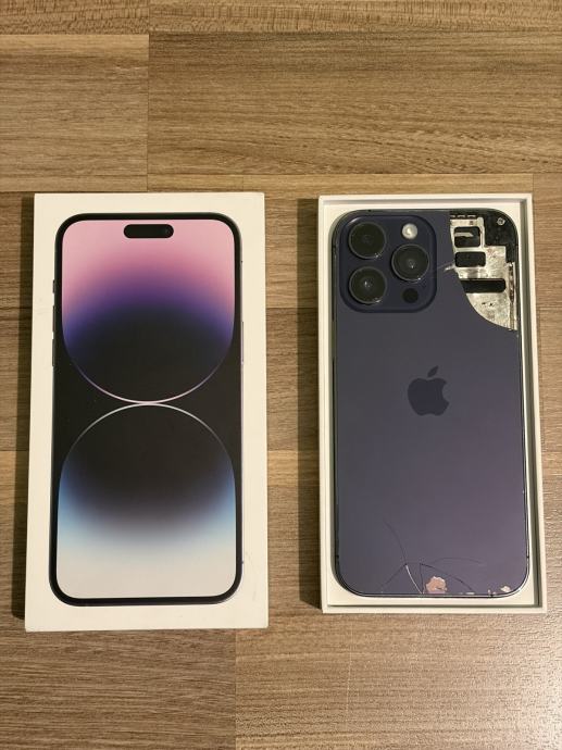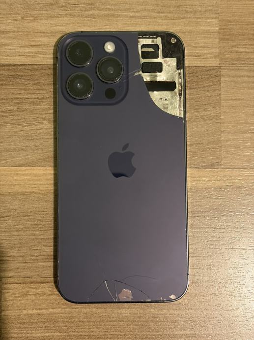 Prodajem iPhone 14 Pro Max sa neispravnim ekranom i puknutim stražnjim staklom. Prednje staklo je cijelo, ali ne reagira na dodir.