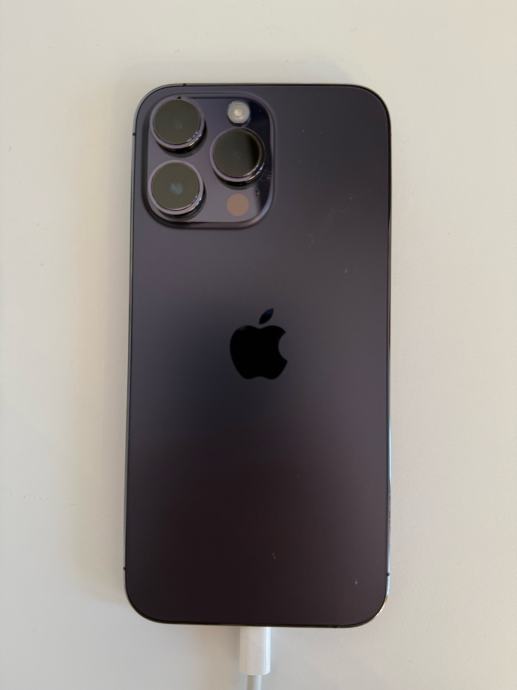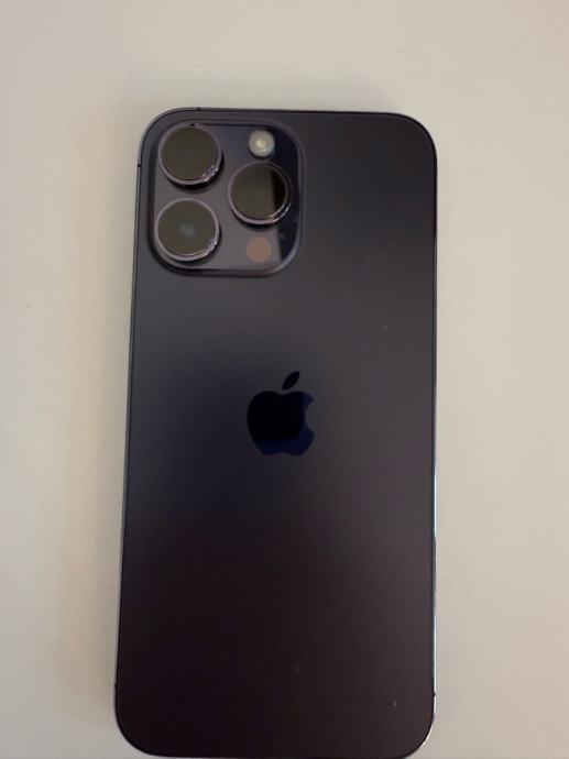 Prodajem iPhone 14 Pro Max u Deep Purple boji. Telefon je u rabljenom stanju, ali potpuno funkcionalan. Model ima karakterističan trostruki sustav kamera i Dynamic Island na zaslonu. Uređaj je održavan i spreman za daljnju upotrebu.