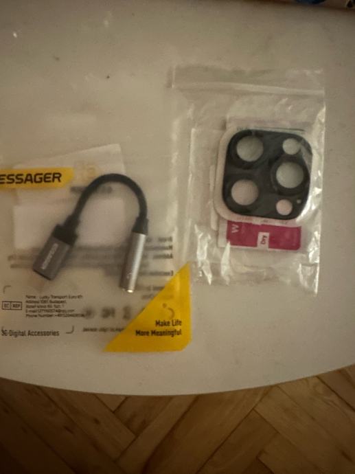 Uz telefon ide maska, zaštitno staklo za ekran i kameru na njemu plus 6 običnih i 3 “private” kom kaljenog stakala i jedna metalna zaštita za objektive. Dajem još i DAC adapter za slušalice i adapter USB C na Lightning.