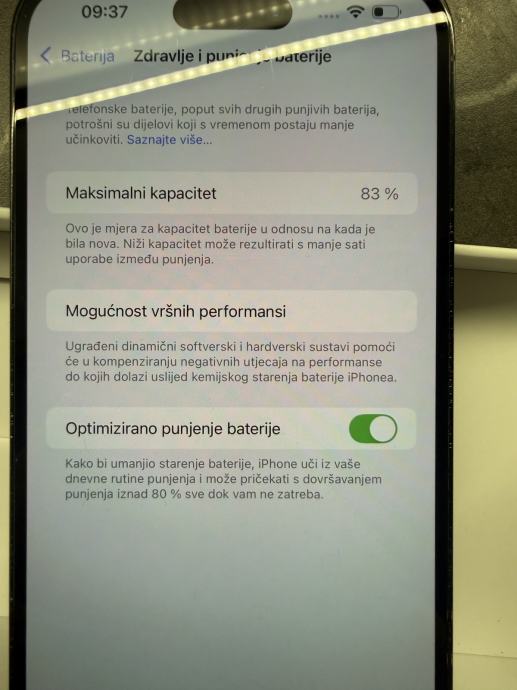 Zdravlje baterije je 83%.