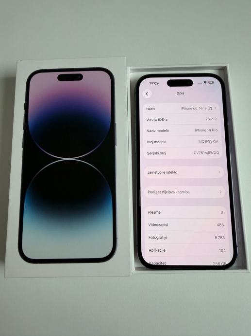 Apple iPhone 14 Pro 256 GB Purple, stanje 10/10 bez ijednog oštećenja. Od 1. dana u maskici i s kaljenjm staklom. Baterija 75%.