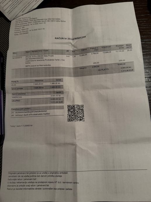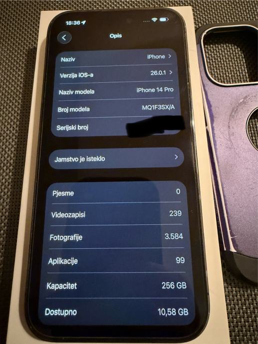 Prodajem rabljeni Apple iPhone 14 PRO prekrasne Deep Purple boje s memorijom od 256GB u MINT stanju. Dolazi u originalnoj kutiji sa svim pripadajućim dodatcima kao što je vidljivo na fotografijama.