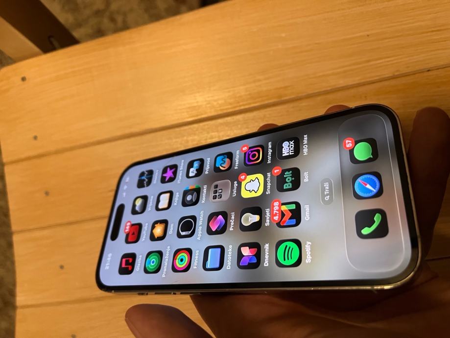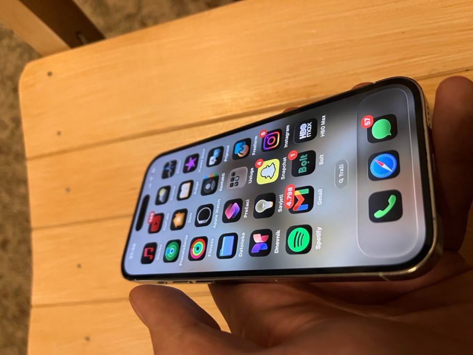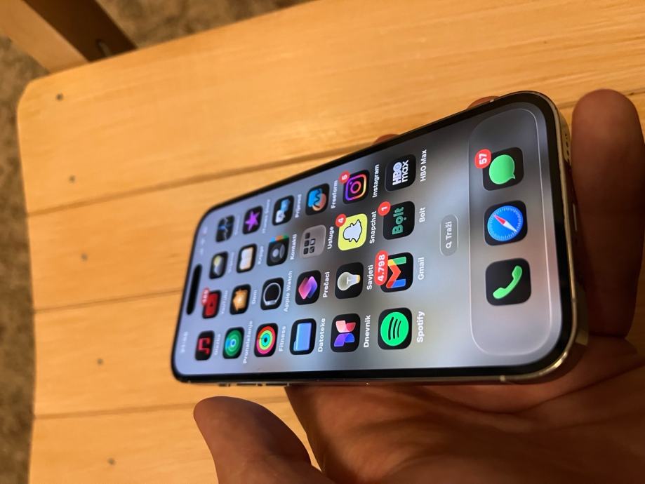 Prodajem iPhone 14 pro bijeli sa 128 gb, uredjaj je skroz ispravan i dolazi uz crnu maskicu i originalnu kutiju, kao sto se vidi na slikama ima crticu na ekranu koja nimalo ne smeta u radu uredjaja, prodajem zbog kupnje novijeg modela. Za ozbiljne kupce moguce korigiranje cijene. Zdravlje baterije 79%