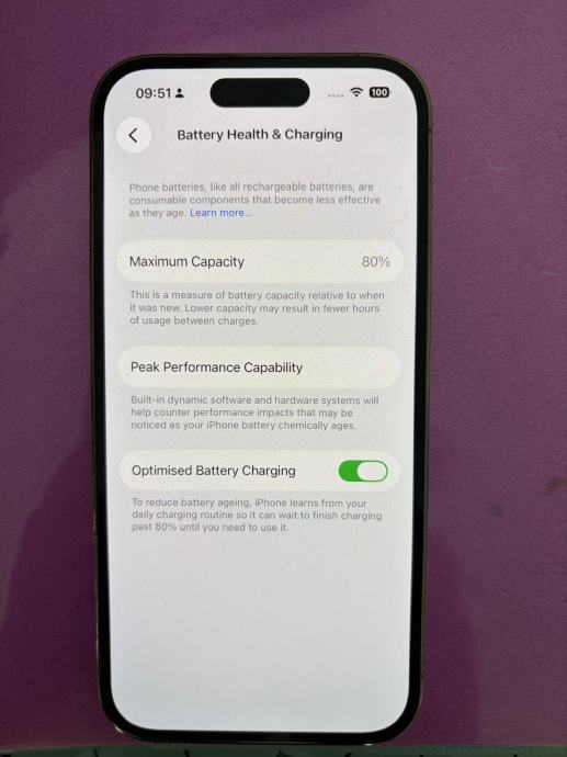 Stanje zdravlja baterije 80%.