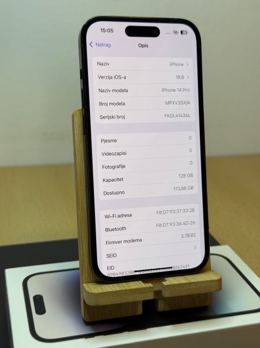 Prodajem iPhone 14 Pro 128GB, potpuno ispravan i svakodnevno korišten bez ikakvih problema.