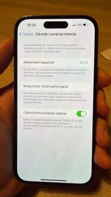 Prodajem iPhone 14 Pro sa 128GB memorije u ljubičastoj boji. Telefon je u dobrom stanju i potpuno funkcionalan. Trostruki kamerski sustav radi besprijekorno, ekran je bez oštećenja, a zdravlje baterije je na 83%.Mobitel radi odlično, bez ikakvih poteškoća, ispravan mikrofon zvučnik, face Id, sve..