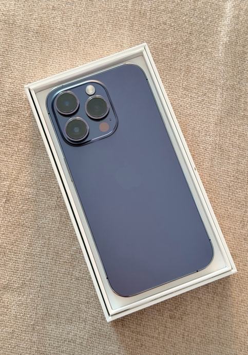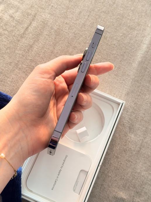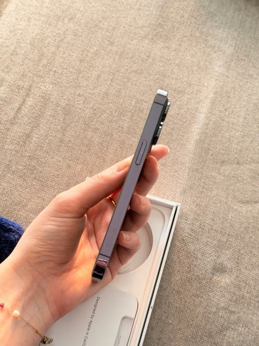 Prodajem rabljeni iPhone 14 Pro s 128GB interne memorije u tamno ljubičastoj boji (Deep Purple).