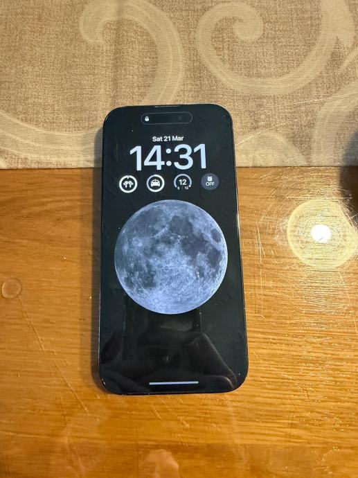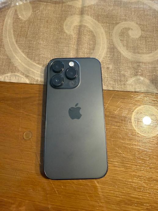 Prodajem rabljeni iPhone 14 Pro s 128GB interne memorije u crnoj boji (Space Black). Radi se o Appleovom Pro modelu s trostrukom kamerom na stražnjoj strani i Dynamic Islandom na ekranu.