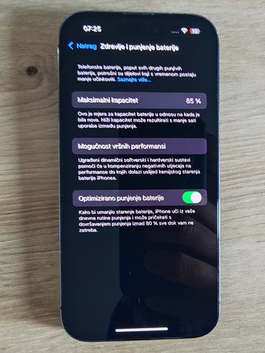 Stanje baterije: 85% (originalna, nikad mijenjana).