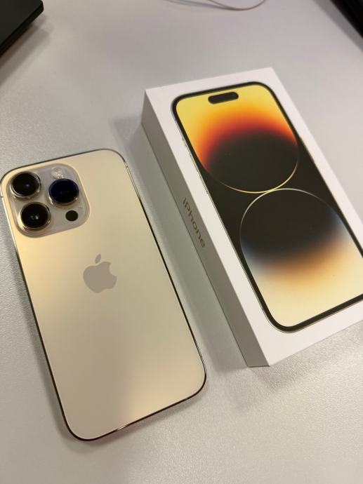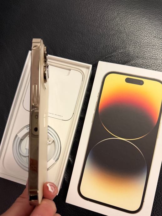 Iphone 14 pro gold 256gb, u super stanju, očuvan ima staklo zalijepljeno, dolazi sa original novim punjačem, zdravlje baterije 83%