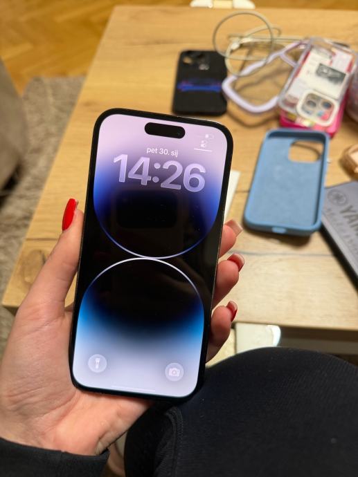 Prodajem rabljeni iPhone 14 Pro u crnoj boji (graphite). Telefon je u dobrom stanju i potpuno funkcionalan. Dolazi s originalnom kutijom, punjacem i 9 maskica