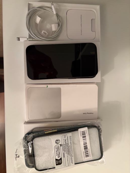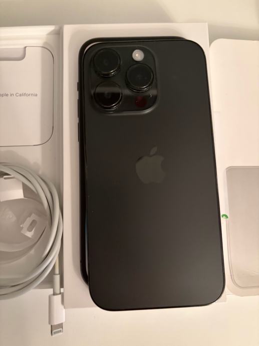 Prodajem iPhone 14 Pro u crnoj boji. Mobitel dolazi u originalnoj kutiji s priborom – USB-C na Lightning kabelom i dokumentacijom. Uz telefon ide i dodatna prozirna zaštitna maska i polish cloth. Sve je kompletno kao što je došlo iz trgovine. Zdravlje baterije je na 86%.