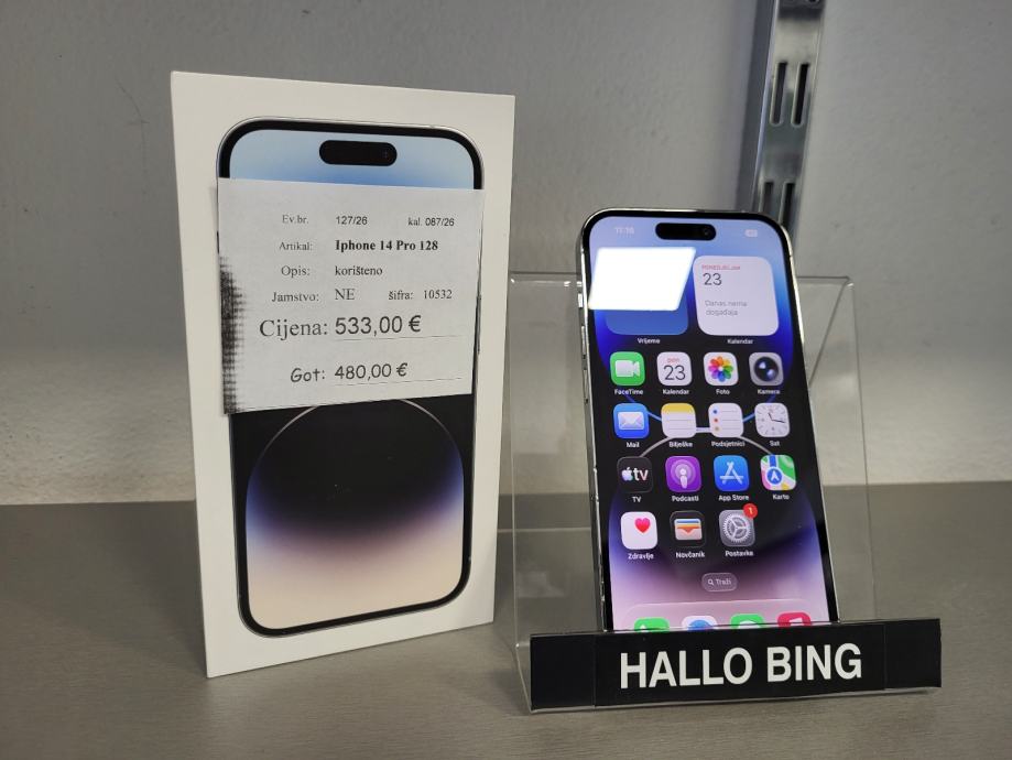 Iphone 14 Pro 128gb sa novom original baterijom, zdravlje 100%. Top stanje, full ispravan. Besplatna dostava BoxNow.