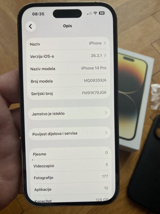 Uredaj u funkcionalnom stanju,icloud cist,128 gb,baterija 78%,mijenjan ekran pa javlja nepoznat dio,stavljen kvalitetan tako da face id i true tonovi rade,kamera na 1x malo mutna i nedostaje staklo na toj kameri al ide uz mob zamjensko…Zg…cijena prilagodena stanju tko hoce dobar funkcionalan uredaj u pola cijene ovo je prilika…