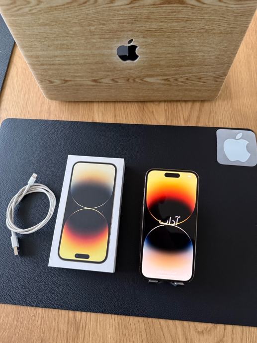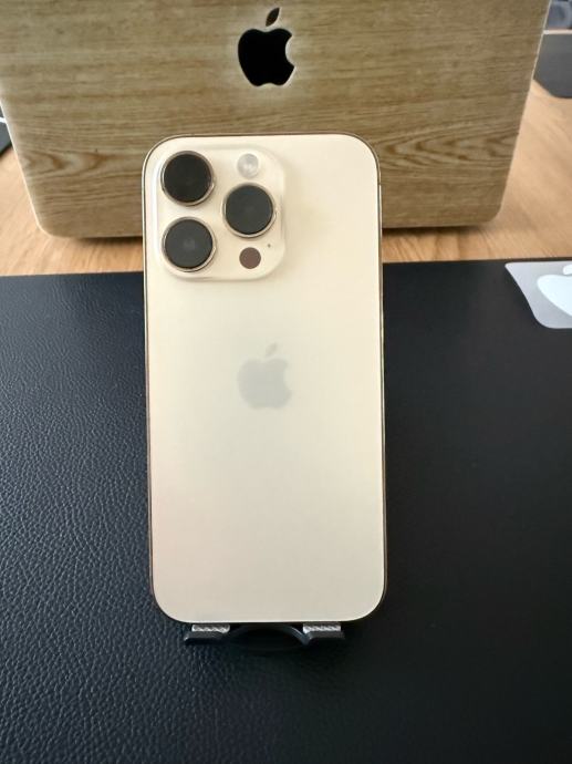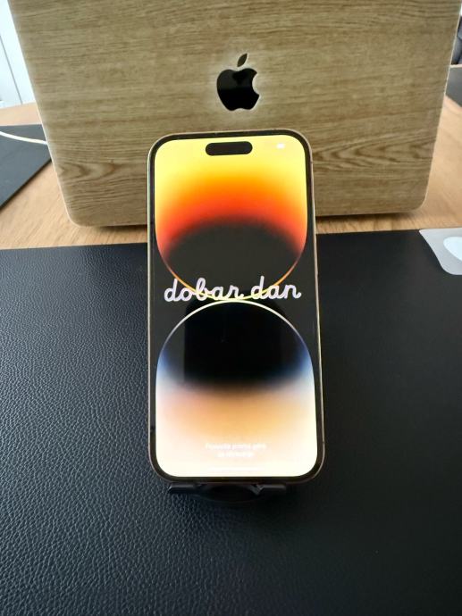 iPhone 14 PRO zlatni, kao nov. 128 GB, mažen i pažen. Star dvije i pol godine, kupljen u Telemachu. Zaštita za staklo i zaštitna maskica (jedini artikl na kojem se vide znakovi korištenja). Telefon je u originalnoj kutiji, ADAPTER i kabel su uključeni u cijenu. Baterija je na 85%, instaliran je iOS 26.3.1