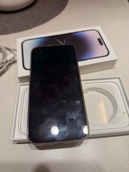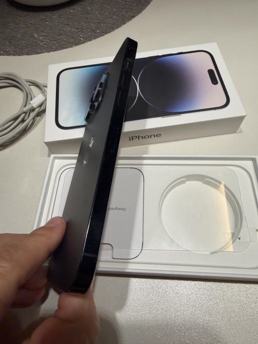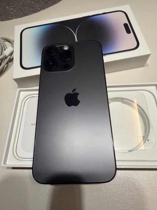 Prodajem rabljeni iPhone 14 Pro Max u tamnoj boji (Space Black). Uređaj dolazi s originalnom kutijom. Kabel i taštitna maskica x2