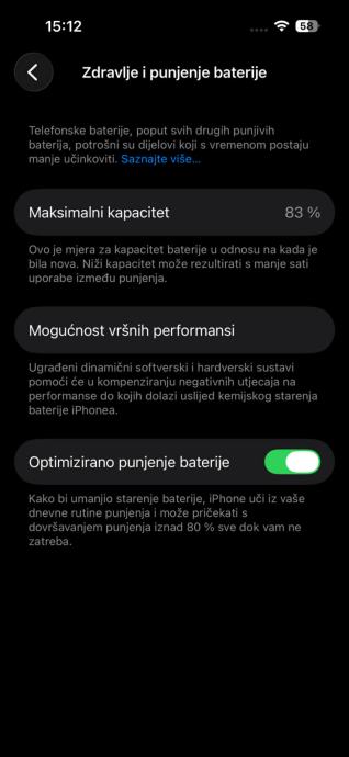 Prodajem navedeni mobitel. Uz mobitel poklanjam 3 maskice i orginal punjac. Zdravlje baterije je na 83%.