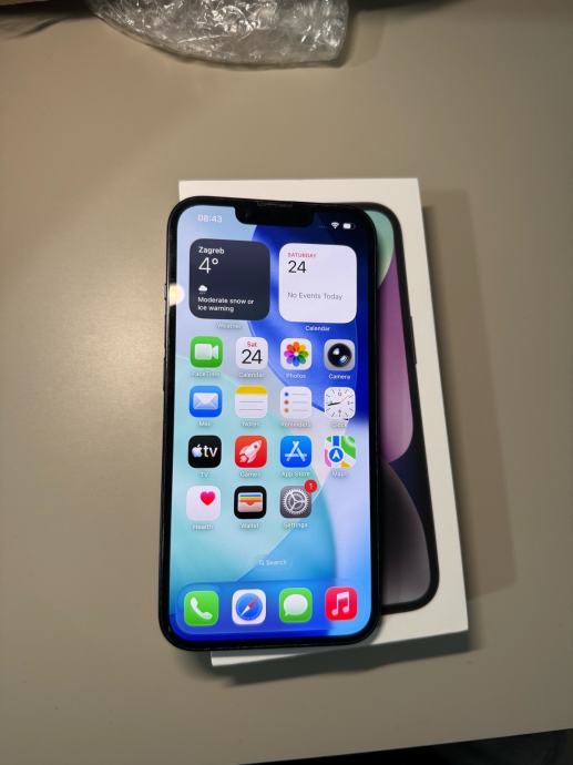 Prodajem iPhone 14 u odličnom stanju, bez ikakvih oštećenja. Mobitel je pažljivo korišten, od prvog dana u maskici i sa zaštitnim staklom, tako da na ekranu nema ogrebotina. Radi savršeno i bez ikakvih problema. Zdravlje baterije je 86 % i bez problema izdrži cijeli dan normalnog korištenja. Memorija je 128 GB, boja midnight plava. Uz mobitel dolazi originalna kutija. Nikad nije popravljan niti otvaran. Prodajem jer prelazim na drugi uređaj.
