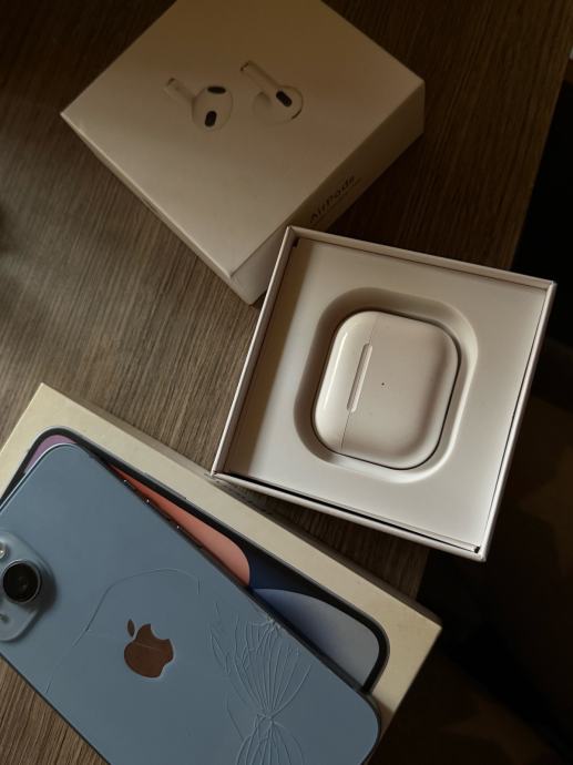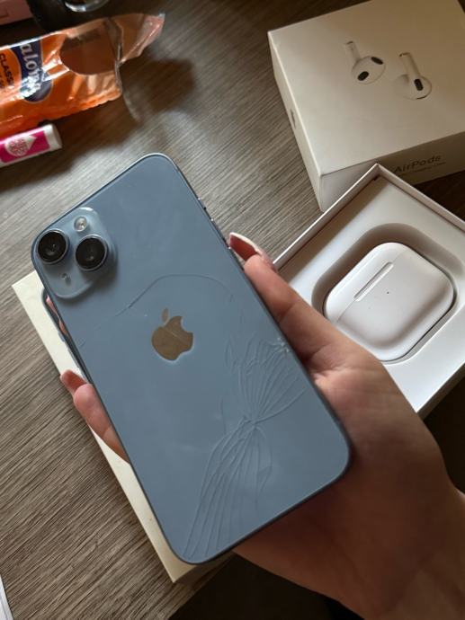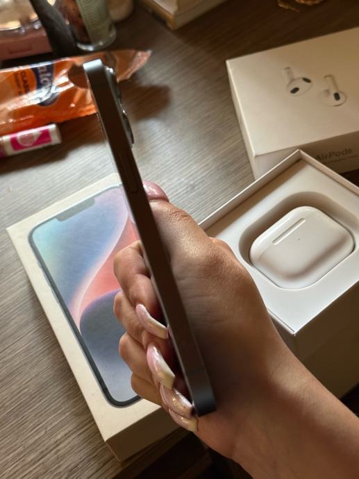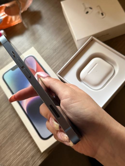 Prodajem iPhone 14 s 128GB memorije i AirPods 3. Oba uređaja su rabljena, mane mobitela kao i zdravlje baterije vidljive su na slikama. Prodaju se zajedno kao komplet. Oboje dolaze s originalnom kutijom, bez kablova.