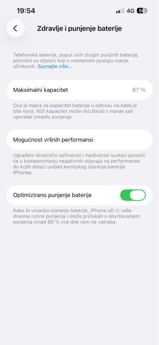 Zdravlje baterije je na 87%