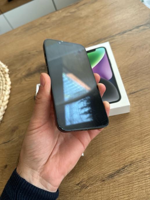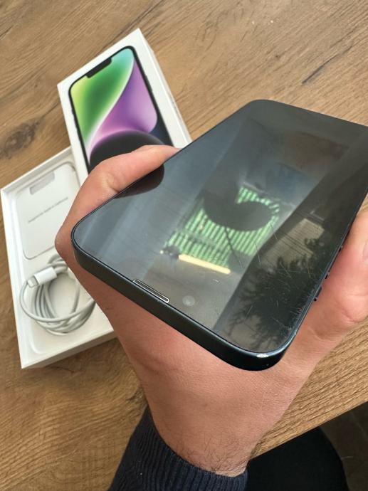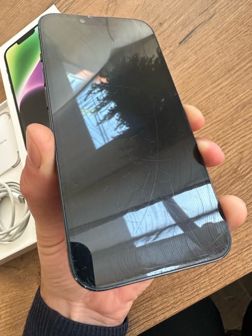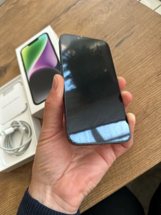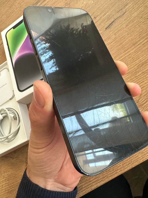 Prodajem iPhone 14 128gb. Mobitel je potpuno ispravan, sve funkcije rade ( mikrofon, Face iD, zvučnici ) kapacitet baterije je 84%. Ekran je izgreban, kao sto se moze vidjeti na slikama, te na poleđini ima par ogrebotina. Dolazi s originalnom kutijom i kablom za punjenje.
