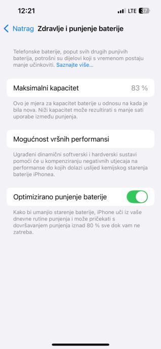 Zdravlje baterije 83%.