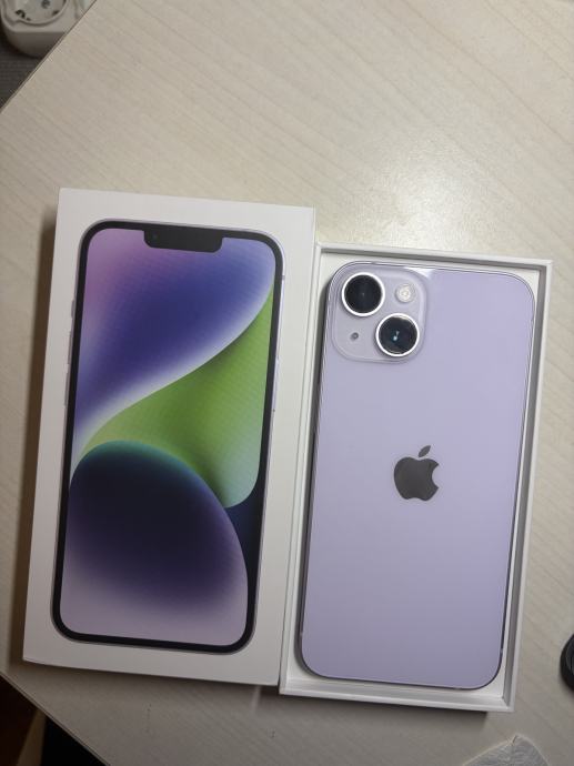 Prodajem Apple iPhone 14 Purple, 128GB. Mobitel je star 2 i pol godine, očuvan jer je cijelo vrijeme u maskici.