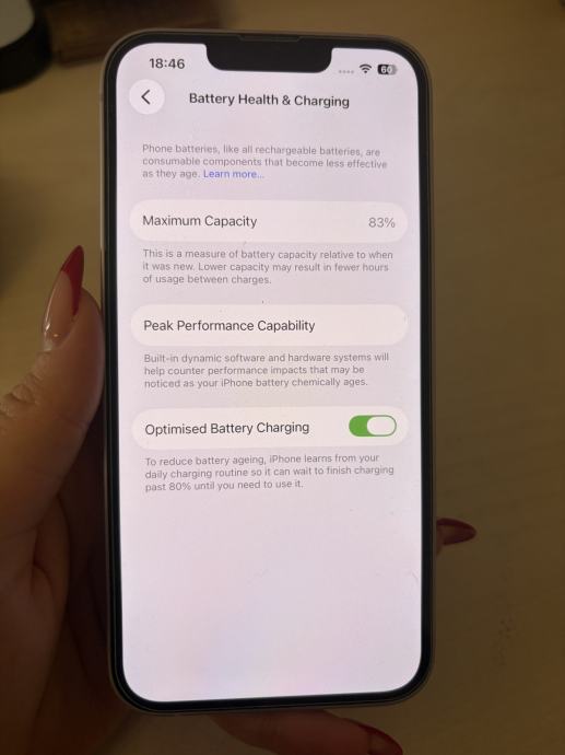 Zdravlje baterije je na 83%, baterija nikada nije mijenjana.