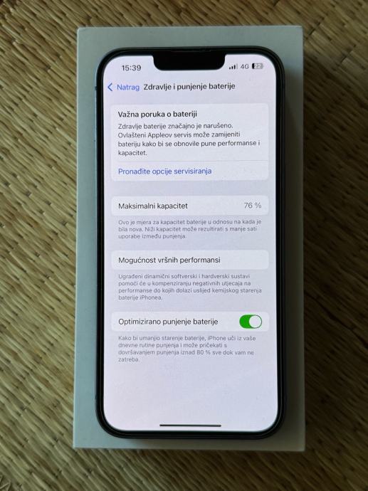 Korišten dvije i pol godine. Sve radi i bez ikakvih vidljivih oštećenja. Uvijek korišten s zaštitnim staklom i maskicom. Punjen je samo na Iphone punjaču, ali ne prodajem ga uz mobitel. Jedina mana je baterija kojoj je zdravlje baterije 76%.