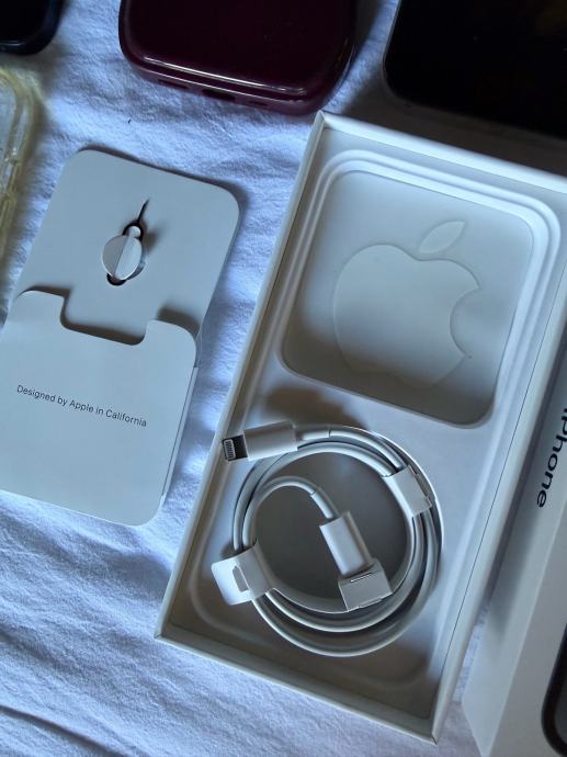 Super stanje, očuvan. 128 GB, boja Midnight. Netaknuti punjač, još jedan isti korišten i originalno pakiranje. 4 maskice od kojih je jedna za bežično punjenje s magnetom.