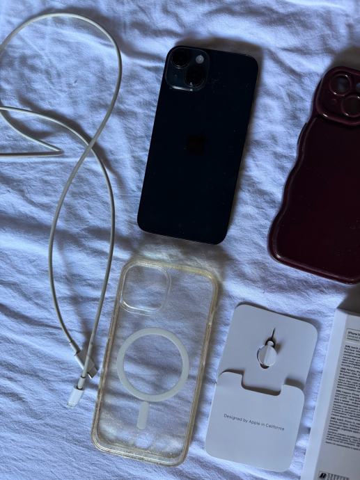 iPhone 14 + dva punjača + 4 maskice (jedan smart za bežični punjač)