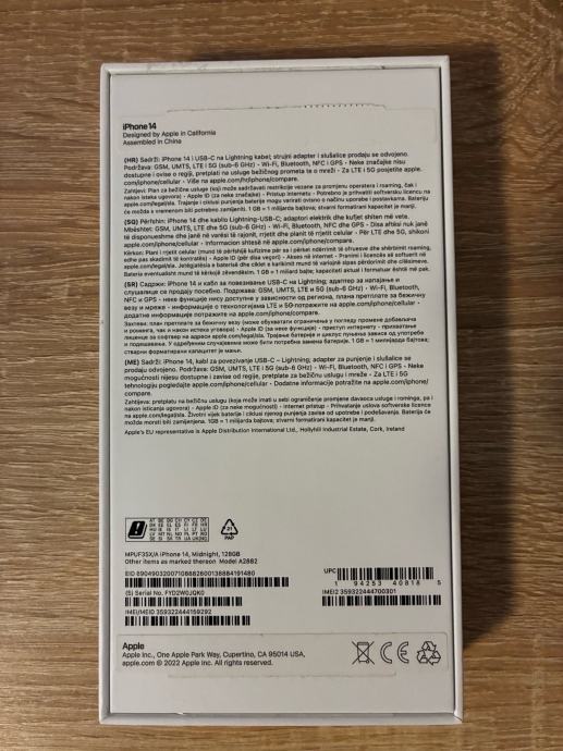 Prodajem rabljeni iPhone 14. Mobitel radi odlično bez ikakvih problema. Ima sitnih tragova korištenja, ali je uvijek bio u maskici. Zdravlje baterije je 82%. Mobitel dolazi u originalnoj kutiji s kabelom za punjenje i crnom maskicom.
