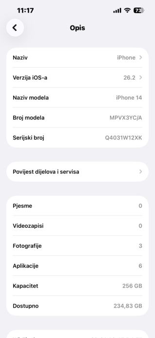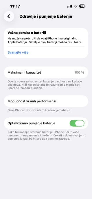 nova baterija stavljena u servisu, zdravlje baterije : 100%.