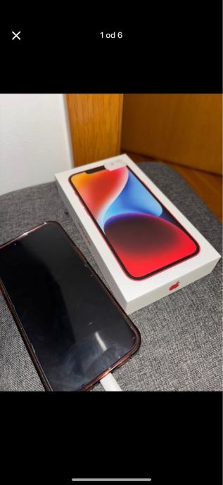 Prodaje se Iphone 14 128 GB crvene boje, uz njega idu maskica, kabel za punjenje i zicane slusalice.