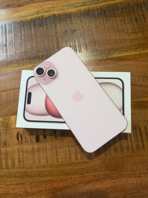 Prodajem iPhone 15 Plus 128 GB u rozoj boji. Uređaj je kupljen 2024. godine i korišten je 2 godine. Ovo je veća verzija iPhonea 15 s većim zaslonom i jačom baterijom.
