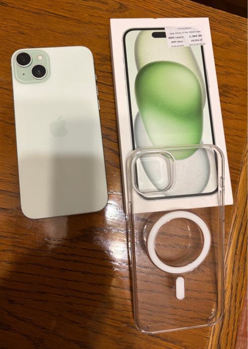 iPhone 15 plus, 256 gb, bez ijednog traga korištenja, kupljen 7.1.2024., baterija 86%.