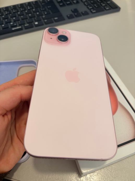 Prodajem iPhone 15 Plus u ružičastoj boji. Telefon dolazi s originalnom kutijom. Uređaj je u potpuno funkcionalnom stanju, sve radi kako treba. Ekran, kamere i sve ostale funkcije rade besprijekorno.