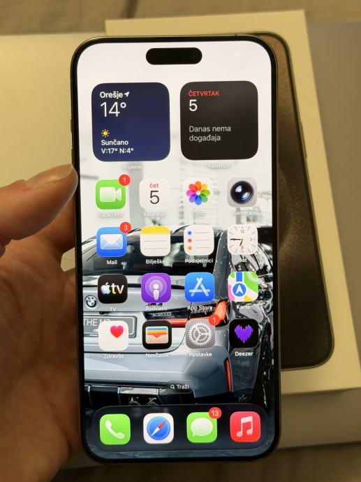 Prodajem iPhone 15 Pro Max 256GB u boji Natural Titanium. Mobitel je potpuno ispravan, uredno korišten i odlično očuvan.