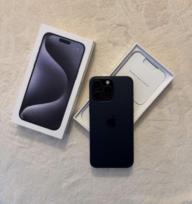 Prodajem iPhone 15 Pro Max, Blue Titanium, 512GB. Stanje baterije 89%. Ne zanimaju me zamjene! Zvati na 0955479919